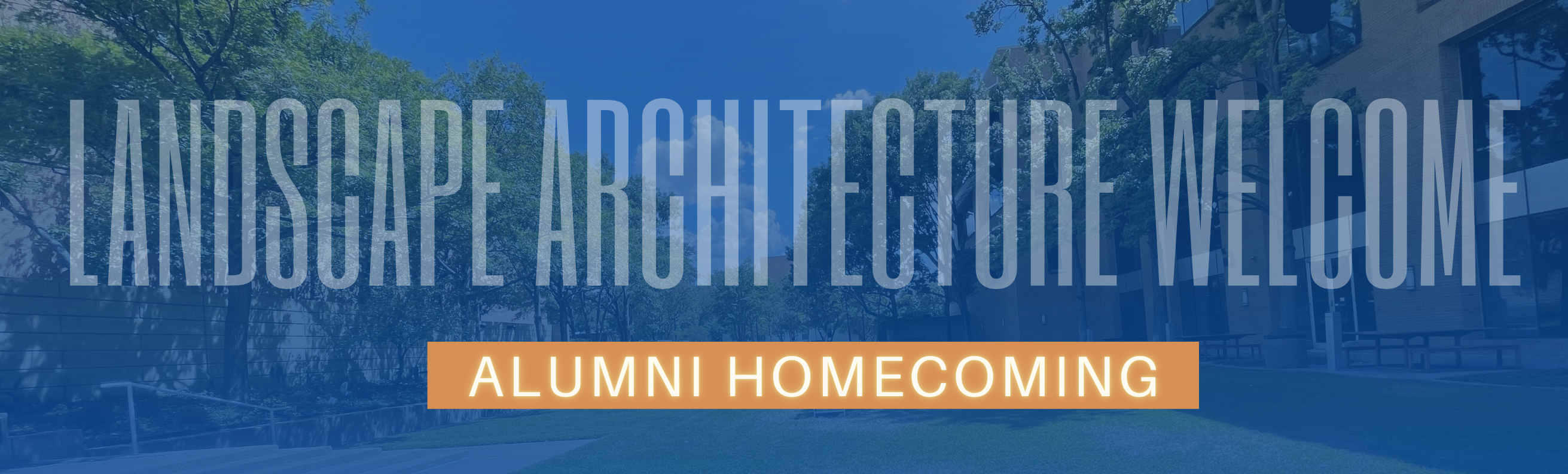 Join us for the Landscape Architecture Fall Welcome gathering. We have invited all students in the Landscape Architecture Program, Bachelor of Science in Sustainable Urban Design and Master of Landscape Architecture to join us on that day. You are also invited to the LARC Alumni Homecoming. Come and be green....orange and blue!
