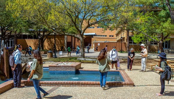 The courtyard opening on October 10, 2022, will feature a bronze plaque cast by UTA art professor Daryl Lauster mounted on a large granite boulder with the following statement: