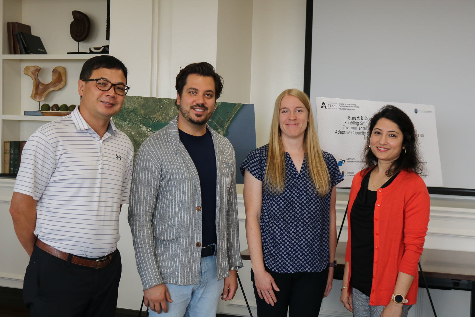 In a press conference on Friday, September 16, 2022 the team presented how this project ties into the larger Smart Coast Initiative, which includes six funded projects focusing in the Texas Coastal Bend Region. Engineering Assistant Professor Michelle Hummel described to the group how important it is to combine technical and social sciences. Associate Professors Bezboruah and Liu explained their respective tasks on social and technical expertise needed for this undertaking. Architecture Assistant Professor Oswald Jenewein explained that the team plans to integrate students as much as possible in funded research projects to provide practical learning experiences. Students from the audience asked numerous questions and shared their excitement about this initiative.