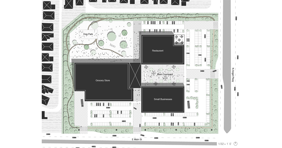 The Student Planning Association (SPA) at UTA collaborated with the Texas Chapter of the American Planning Association (APA) to propose the Legacy Project: An Urban Design Proposal of "Angel Crossing." This proposal would create a dynamic space fostering engagement and creativity, hosting festivities and community events year-round for residents, students, and tourists in the City of Allen, TX. As urban planners and designers, their mission is to transform spaces to meet people's needs. The programs they decided to implement at the site respond to the area's food desert status, community needs, and economic growth.