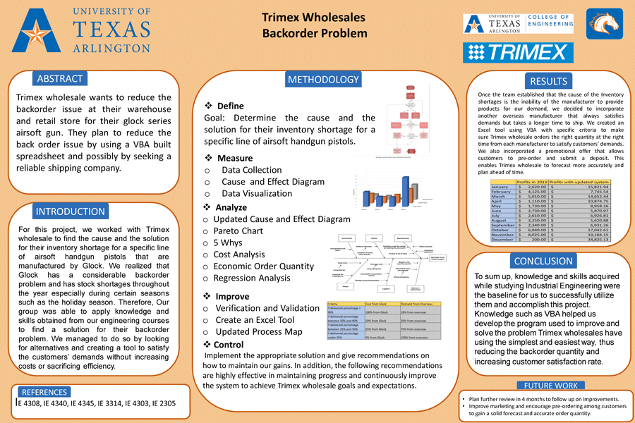 Trimex wholesale wants to reduce the backorder issue at their warehouse and retail store for their glock series airsoft gun They plan to reduce the back order issue by using a VBA built spreadsheet and possibly by seeking a reliable shipping company