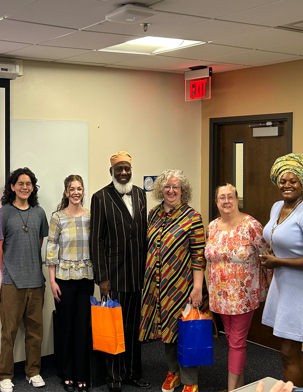 Symposium speakers Rue Rios, Libby Morse, Dr. Jamal Rasheed, Margaret Adler, Pamela Jordan and Tai Drake.