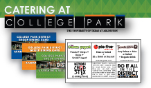 Group Catering in College Park offers UTA departments a unique opportunity to provide event guests with multiple dining options while the department still covers the cost. No longer must you pick one meal for all. Use College Park!