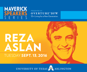 Author and religious scholar Reza Aslan kicks off the 2016-17 Maverick Speakers Series at 7 p.m. tonight, Tuesday, Sept. 13, at Texas Hall. His topic is "My Journey Through the World's Religions."