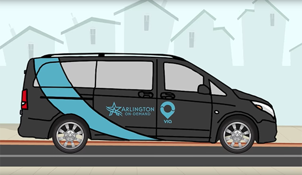 Arlington's new Via rideshare program—arlington-tx.gov/via—is underway. Rides are available for $3 Monday-Saturday in UTA, Downtown Arlington, the Entertainment District, and the Centreport Station of Trinity Railway Express.