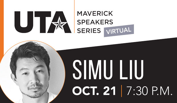 Join UTA for “A Conversation with Simu Liu,” star of Marvel Studios’ Shang-Chi and the Legend of the Ten Rings, at 7:30 p.m. Thursday, Oct. 21, as part of the Virtual Maverick Speakers Series.