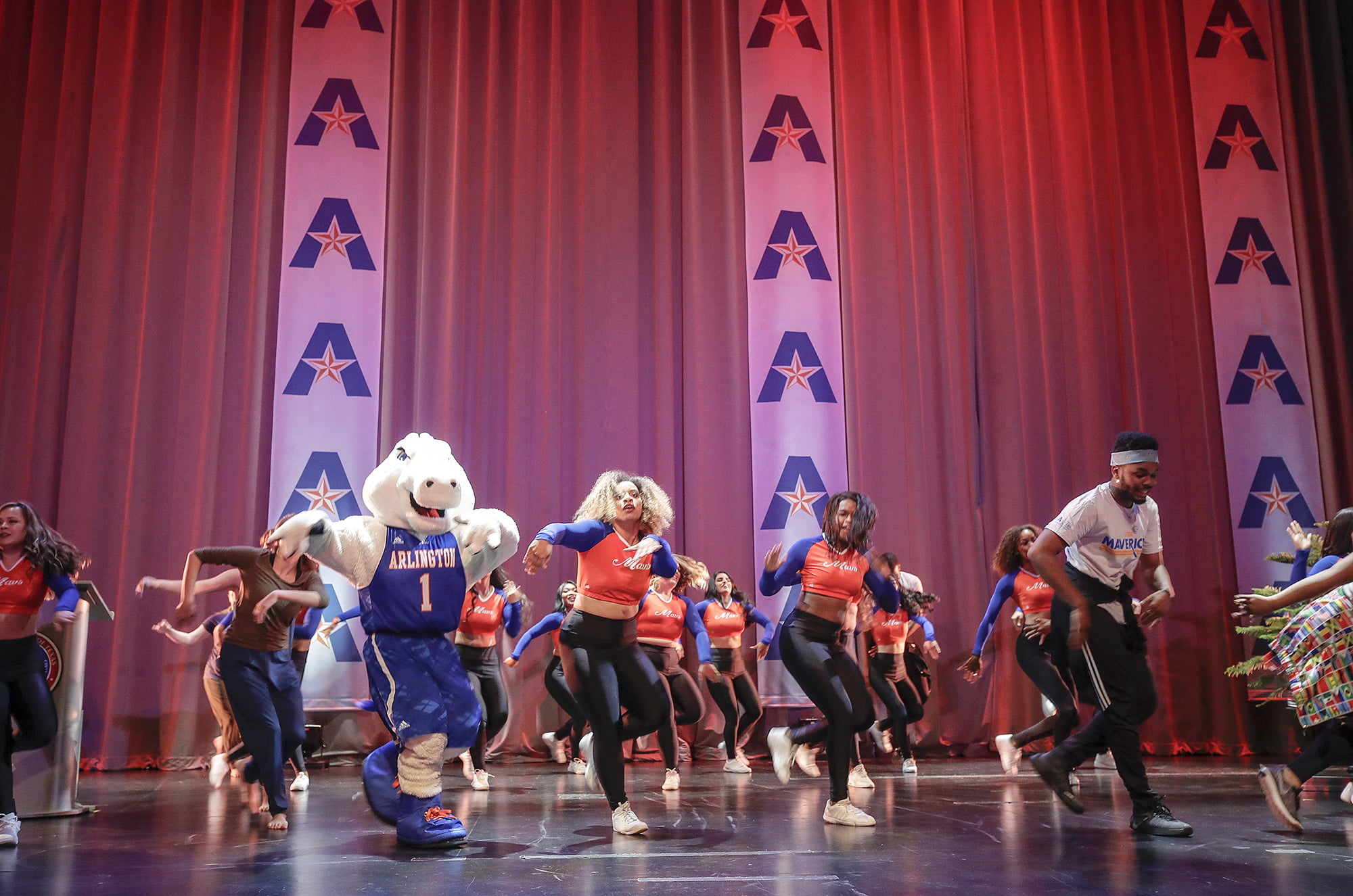 The president, university officials, student leaders and UTA alumnus and radio personality Rock T addressed a boisterous student crowd Tuesday in Texas Hall during the 2018 MavsMeet Convocation.
