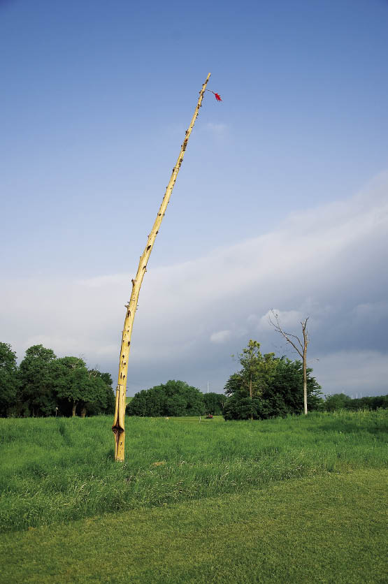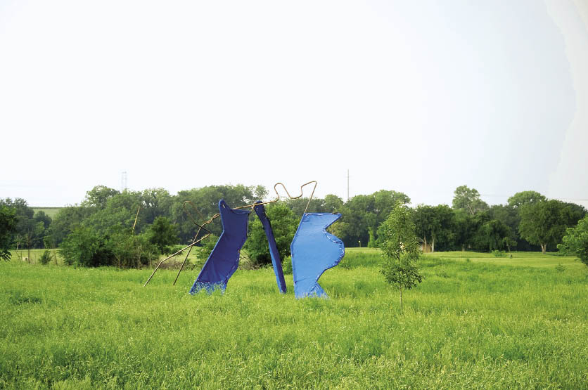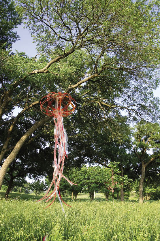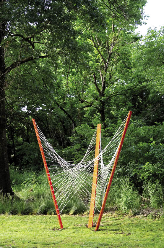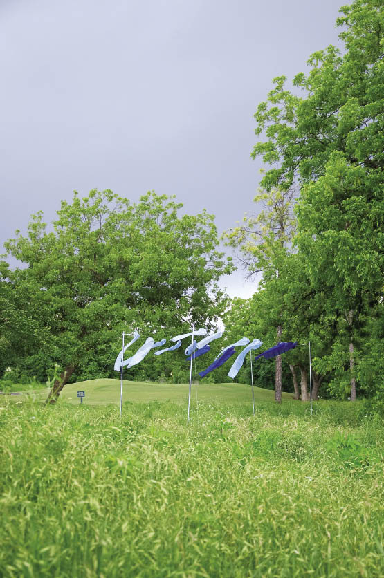 Plane Air was the brainchild of sculpture Assistant Professor Darryl Lauster, who approached course officials with the idea of putting an exhibit in an unexpected place. The works were created by students in Lauster’s 3-D Forms and Intermedia classes (intermedia works use less traditional materials). Some of the sculptures were site-specific and addressed the course landscape; others were abstract constructions designed to contrast with their environment.
