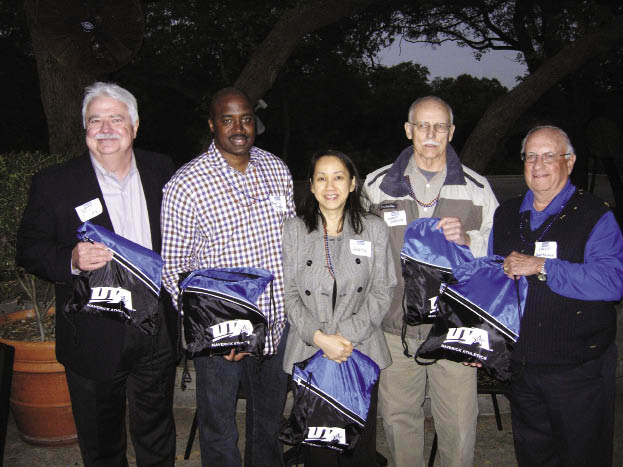 Attending an alumni mixer in Austin in March were, from left, Bill Fleming ’74, Roger Goodwin ’94, Hoang Ainsworth-MacDonald ’01, Robert Johnson ’68, and Charles Feuerbacher ’61.