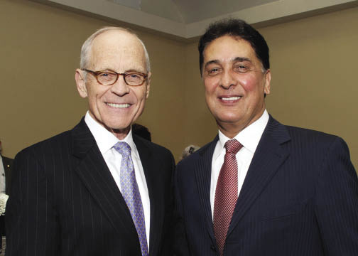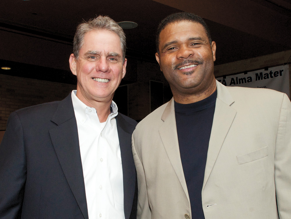 Bill Lively, left, and Mojy Haddad ’81 at a Development Board dinner in March. Lively, president and CEO of the North Texas Super Bowl XLV Host Committee, spoke at the dinner.