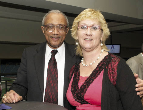 Maxwell ’66 and Vivian Scarlett at the 1895 Society All-Star Reception in June in the Diamond Club at Rangers Ballpark in Arlington.