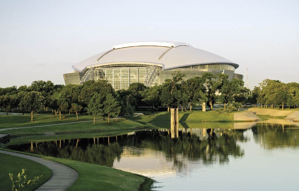 “Football may be the main attraction at the new Cowboys Stadium, but the structure itself, with its retractable roof, monumental arches and massive video screen, should provide plenty of visual entertainment during those long, dull pauses for network commercials and instant replays.” – June 3, 2009