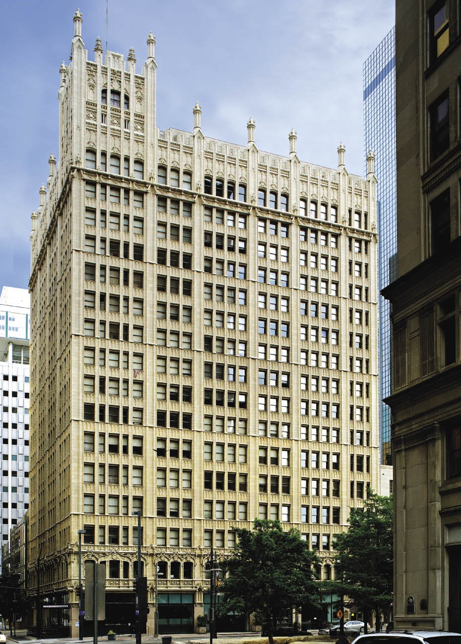 “The building still has an interior shopping arcade running from Main to Pacific, one of those urban delights that downtown Dallas has forsaken in its frenzy over skybridges and tunnels. And it has a memorable lobby; not large, but, like the façade, surprisingly impressive. The combination of brass, cut-glass mirrors, ornamental plaster and decorative vaulting creates a sumptuous feel that anticipates the grand skyscraper lobbies of the 1920s and ’30s.” – Dec. 26, 1987