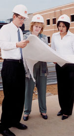 VLK has also assisted on feasibility assessments and other smaller projects on campus. Its primary jobs are public education facilities and corporate training centers. The 65,000-square-foot continuing education complex is budgeted to cost $6.78 million. That's a big project in Chad Davis' eyes, and he says doing work at his alma mater is "fun and difficult at the same time." "You want to show your talents, but you must also fit within the university setting," said Davis, the project designer, who holds two UTA degrees. "You have a whole lot of constraints when you're working in a university environment." UTA has long boasted one of the area's best architecture programs, and it has become a conduit to firms throughout North Texas. But University alumni, both with bachelor's and graduate degrees, are perhaps nowhere more popular than at VLK, the second-largest architectural firm in Tarrant County. UTA exes work in every department, from management to construction administration. John Wallis, who earned a master of business administration degree in 1991, is a principal and handles most of the company's financial issues. Coupled with the architecture and civil engineering degrees he earned from another university, he said the financial training he received at UTA has given him a balanced education that's perfect in his current role. "The business aspect of architecture is an area that most colleges of architecture don't focus on," he said. "My M.B.A. emphasis was on finance, and it's helped me tremendously in areas such as budgeting and cost estimation. I handle most of the business aspects for our firm—the banking, the 401(k), the insurance—and I enjoy it." Though he's not often at the drawing board, plenty of his classmates are. Wallis said the firm hires UTA grads because "we need talented employees." And they're queueing up to sign on. "It's like one tells two, and they tell two," Wallis said, "and next thing you know, we've secured some really fine individuals here through word of mouth. We're tied to the University from that standpoint. … There are good feelings going both directions." Strong ties to UTA have been nothing but beneficial, Davis said, and just because half the company's work force graduated from the same place doesn't mean that everybody thinks alike. "Everybody has a different path. You can go through the same school and never have the same professors. And they [VLK employees from UTA] all have different expertise." UTA's architecture strength has long been in design, which made theT school a perfect fit for Davis. "I feel like I got a really good education. I found it to be very well-rounded, and it prepared me for my work at VLK." Besides being a member of the team working on the continuing education project, Davis also recently designed a high school in the Denton Independent School District and a ninth-grade center for Crowley ISD. Though Davis says his education readied him for his career, Wallis said that when it comes to a career in architecture, there's no substitute for experience. Which makes UTA grads all the more in demand. "We look for folks who graduate and want to continue to learn," Wallis said. "This is an experience-based type of profession. It's a complicated profession that's learned on the job. UTA produces talented people. By the time they finish, they've demonstrated a desire to learn. They're well-equipped, and they have that internal motivation." They also have a certain loyalty. Some VLK employees serve on the University's Architecture Alumni Board. Most still visit their old professors. At least one is such a part of UTA that she spends much of her free time on campus. Donna Austin, a 1980 master of architecture graduate, is working on the continuing education complex even while she's working in the old one. She has taught yoga there part time for six years. "It's kind of exciting," she said of work on the new structure. "It's such an interesting project." Austin has experienced a few of those in her career, including other assignments for the University. She had a hand in some of the campus apartments built in the 1980s. "Those were the only new apartments on campus before a couple of years ago," she said. "It's amazing that there weren't more dorms. How do you keep a student population the size of UTA?" Sustaining a lot of UTA folks in one small place? VLK Architects seems to have that one figured out. – Danny Woodward