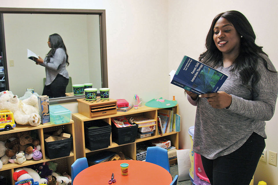Daphene Woods, master’s student in social work, is an intern in the play therapy room of the Center for Clinical Social Work.
