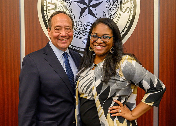 UTA’s Pre-Law Center opened the Adelfa B. Callejo Courtroom on campus earlier this year thanks to generous funding from the Callejo-Botello Foundation. The courtroom honors the legacy of Adelfa Callejo, a lawyer who advocated for increased educational opportunities, particularly among low-income and marginalized students.