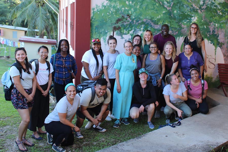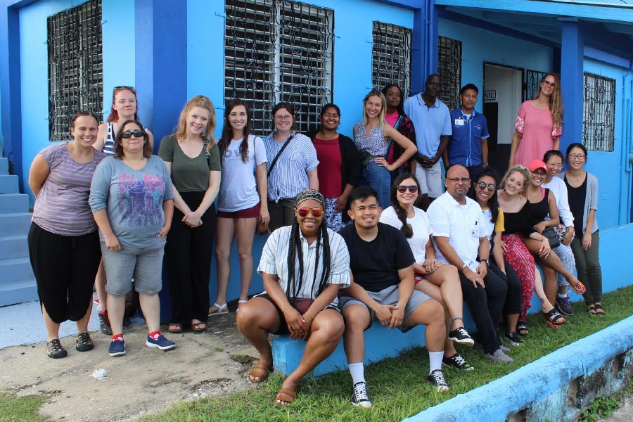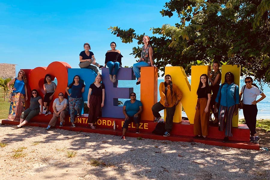 Late last year, the School of Social Work expanded its global footprint with its first student/faculty study abroad course. A group of undergraduate and graduate students traveled to Belize with two social work faculty members—Associate Professor Eusebius Small and Assistant Professor in Practice Tracy Orwig—to better understand which people gain access to health care and how community residents are informed of their health options.