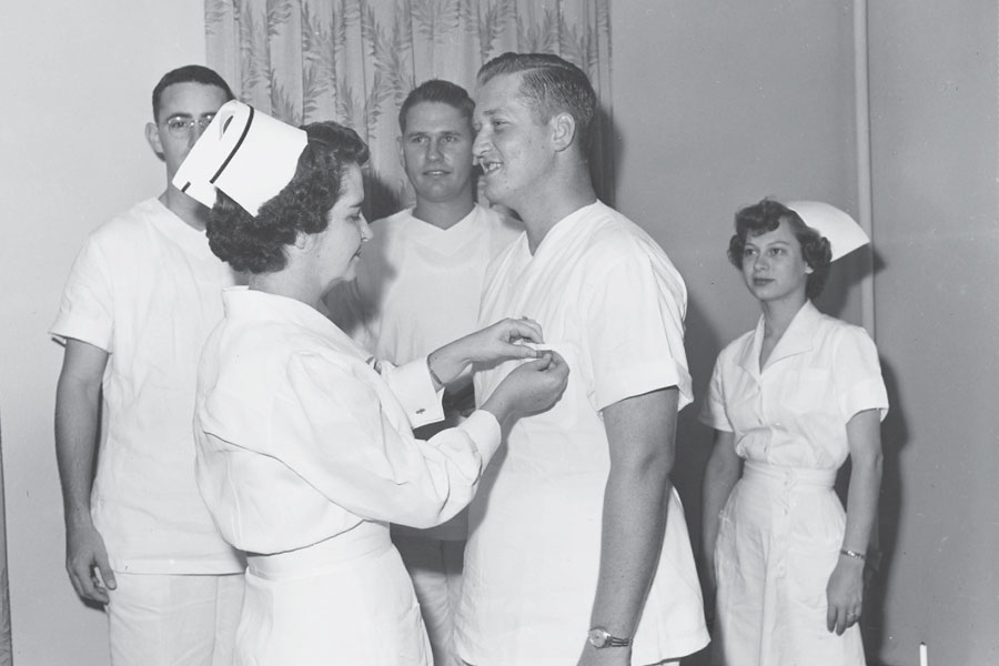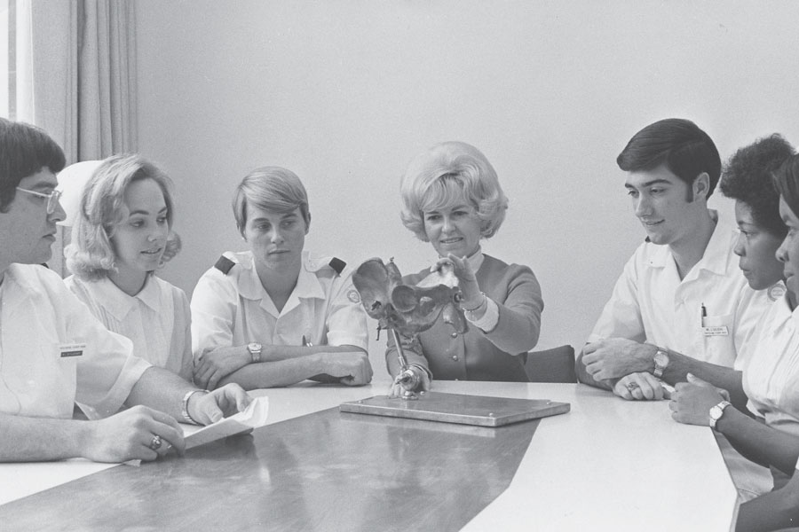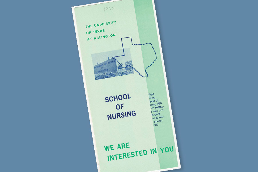 This year, as the College of Nursing and Health Innovation celebrates its 50th anniversary, UTA’s Special Collections launched A Tribute to Nurses, an exhibit that explores the history of nursing at UTA and well beyond, including developments in the nursing profession, training nurses, public service during wartime, and rites of passage such as graduation and pinning ceremonies. The exhibit is on display at the Central Library through Sept. 15, 2022.