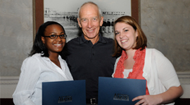 Tiara Criner, left, and Candice Freeman received the Simmons-Blackwell Endowed Scholarship that Tom Simmons (‘72) helped establish for first-generation college students
