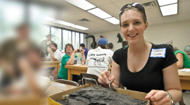 Junior geology major Brandi Clark helps prepare the fossils for study and publication. Cleaning one piece of crocodile bone can take hours, she says.
