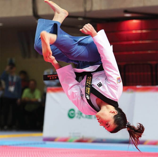 Managing her studies. Helping run the family business. Amassing world titles. It’s business as usual for Adalis “AJ” Munoz, a psychology and exercise science senior who also is a fourth-degree master black belt and the World Taekwondo Poomsae champion—a title she claimed in 2018 for the third consecutive year.