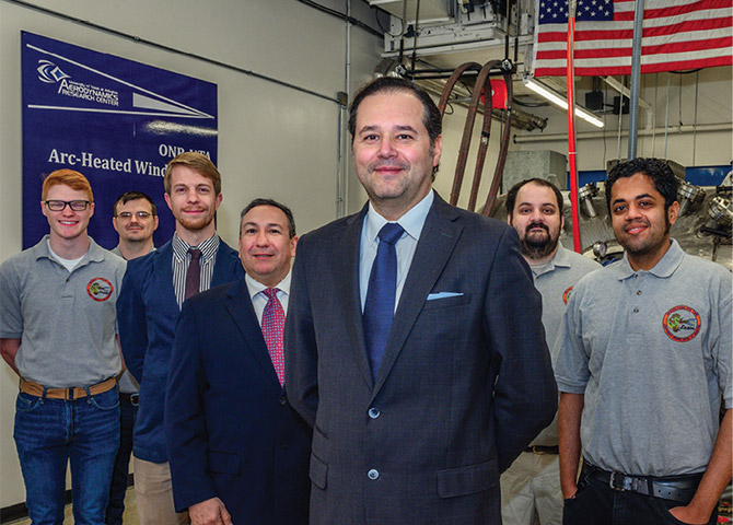 UTA’s arc-heated, hypersonic wind tunnel—the only one of its kind in the nation at a university—came online in 2019. Through funding from the Office of Naval Research (ONR), research at the wind tunnel focuses on developing advanced laser-based measurements of plasma flow for the study of heat shields for hypersonic vehicles.