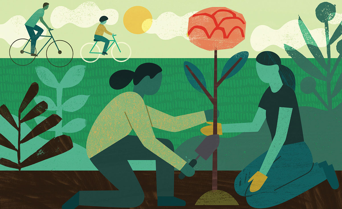 While bustling cities are often epicenters of jobs, housing, health care, and other life-supporting resources, large urban landscapes can also produce harmful effects on their environments. Materials used for buildings, roadways, and other infrastructure absorb the sun’s heat and slowly release it, causing metropolitan temperatures to be warmer than surrounding rural areas. Concentrated cities become islands of heat, leading to increased energy consumption, pollution, and greenhouse gas emissions.